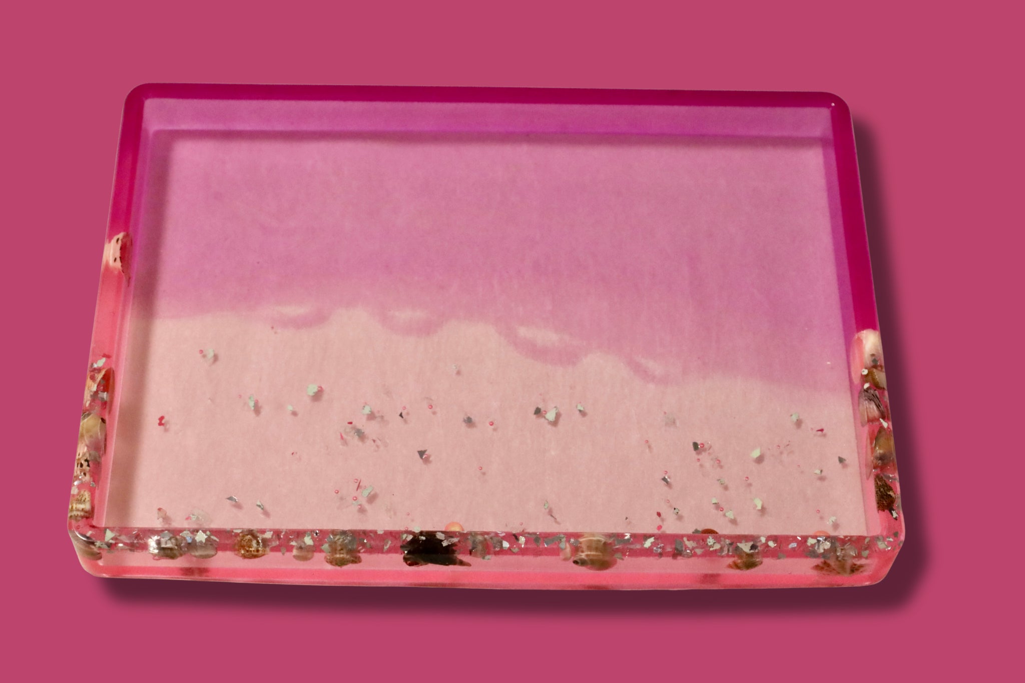 Custom Ombré Pink Ocean Trey with Shells | 10x7 Handmade Resin Tray | Coastal Décor & Gift